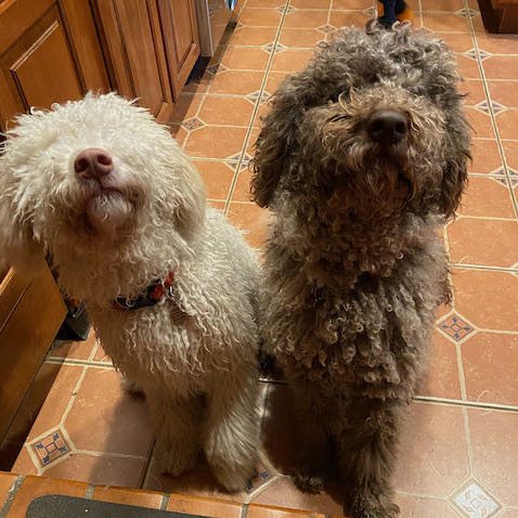 Milo and Gigio Doggo are nondenominational mascots and very good boys. They are usually wet and will steal your socks if you leave them out.